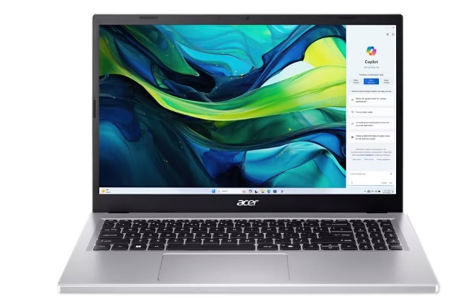Aspire Go 15 - Windows 11 Home - Intel® Core™ i5-1334U - 16 GB DDR5 Memory + N - 512GB PCIe NVMe SSD PM4 + N/A - 15,6" FHD 1920x1080 IPS Anti-Glare 300nits - Intel® Iris® Xe Graphics - Wifi 6 802.11AX + BT 5.1 - HD USB TNR Camera with 2Mic. - 2x USB Type-C™ port supporting: USB 3.2 Gen 2 (up to 10 Gbps) / DisplayPort over USB-C / USB charging 5 V; 3 A / DC-in port 20 V; 65 W - 2x USB 3.2 Gen1 - HDMI 2.1 - Acer Sense App - Copilot Key (AI) - 53Wh Li-ion battery - 65W USB Type-C AC Adapter PCR50% TCO9.0 - Pure Silver
