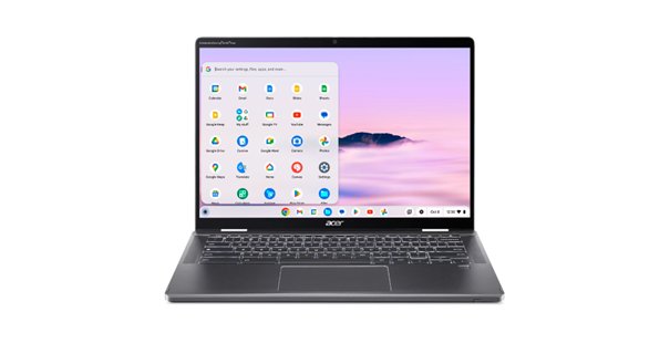 Acer Chromebook Plus Spin 714 (CP714-1HN-59L1) - Google Chrome Core Operating System - Intel® Core™ Ultra 5 processor 115U - 8 GB LPDDR5X Memory On Board + N/A - 256GB PCIe NVMe SSD PM4 + N/A - 14" WUXGA 1920x1200 16:10 IPS Glare sRGB 100% 340nits Multi-Touch Antimicrobial Corning Gorilla Glass with USI Pen garaged in body - Intel® Graphics - Wifi 6E Intel 802.11ax 2x2 MU-MIMO + BT 5.1 - QHD MIPI TNR Camera with 2Mic. and camera shutter - 2x USB Type-C™ port supporting: Thunderbolt™ 4 / DisplayPort over USB-C / USB charging 5 V; 3 A / DC-in port 5 / 9 / 15 / 20 V; 65 W - 2x USB 3.2 Gen1 - HDMI 1.4 - OceanGlass™ touchpad - TPM H1 - 53Wh Li-ion battery - 65W USB Type-C AC adapter - Steel Gray Aluminium LCD and bottom cover