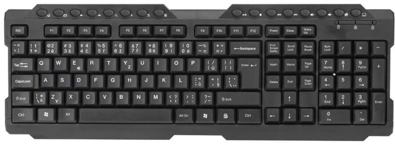 Multimediální kabelová klávesnice v černé barvě (bez oranžových zvýrazněných kláves pro hráče) s funkčními tlačítky. V horní části klávesnice je umístěno 16 multimediálních tlačítek. Umožňují ještě pohodlnější navigaci v operačním systému, výběr aplikace či ovládání multimediálního přehrávače. Toto řešení umožní rychlou a výhodnou práci s počítačem.