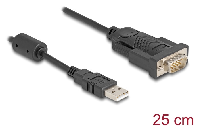Delock Adaptér z USB 2.0 Typu-A na 1 x Sériové RS-232 D-Sub 9 pin zástrčkové rozhraní s feritovým jádrem, 0,25 m