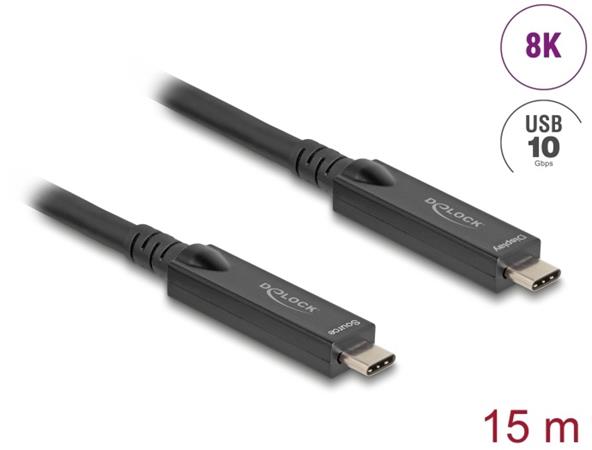 Delock Aktivní optický kabel USB-C™ 8K Video + Data + PD, délka 15 m