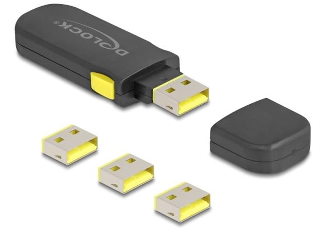 Delock Sada blokovacích portů USB na zásuvkové porty USB Typu-A; 4 ks + nástroj na zamykání