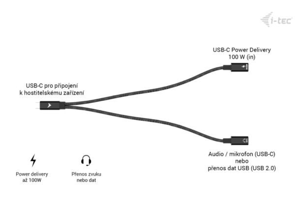 i-tec USB-C Cable Splitter Audio/Data + Power Delivery 100W