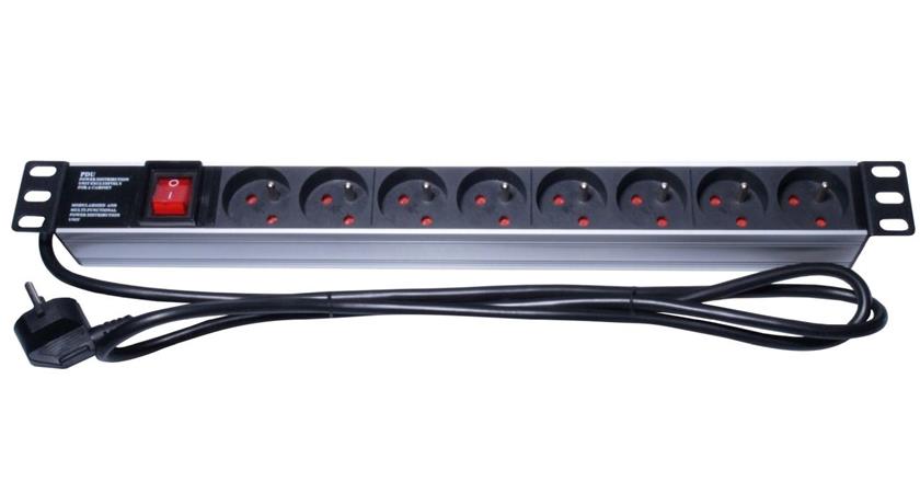 PremiumCord Panel napájecí 1U do 19" racku, 8x230V, 2m kabel, vypínač