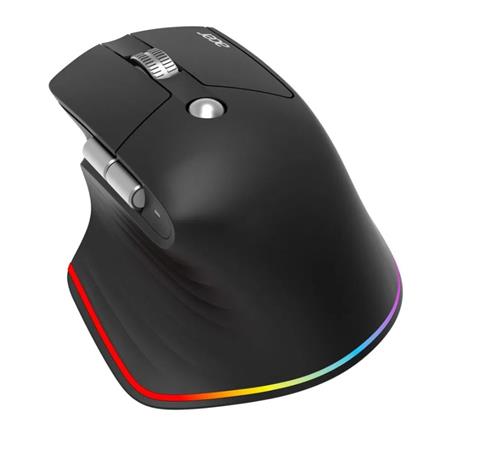 Acer Easy Fit Mouse - Black, Wireless RF 2.4GHz + BT (2x) + USB, ergonomická (pro praváky) s komfortním matným povrchem, tichá tlačítka, citlivost 4000 DPI (4 stupně 1000-4000), 6 tlačítek, RGB podsvícení (16 módů), dosah 10 m, USB-C nabíjení, Li-ion baterie 500mAh, výdrž až 120 hodin, nabíjecí čas 2,5 hodiny, rozměry 125 x 70 x 42 mm, 100 g, Win/macOS, Chrome OS, retail pack