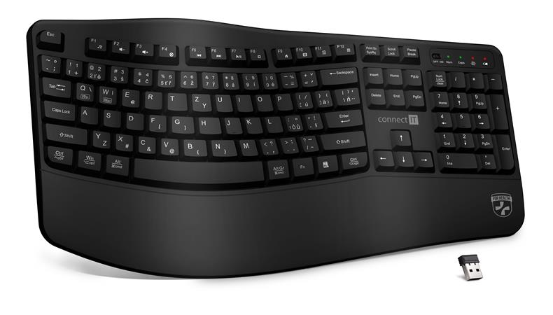 CONNECT IT FOR HEALTH Ergonomická klávesnice, bezdrátová, USB 2.4GHz, CZ + SK verze, ČERNÁ