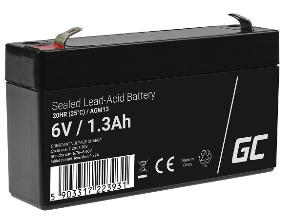 Green Cell AGM VRLA 6V 1.3Ah maintenance-free battery for the alarm system, cash register, toys
