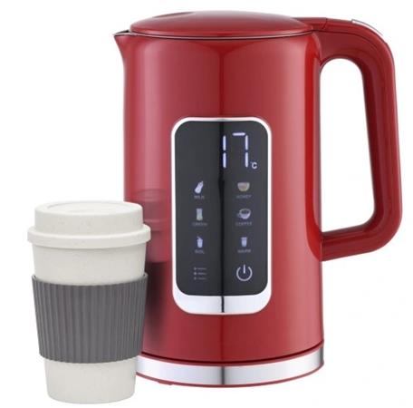 PLATINET RYCHLOVARNÁ KONVICE LCD 1,7L 5 TEPLOT + 450 ML CESTOVNÍ HRNEK, ČERVENÁ