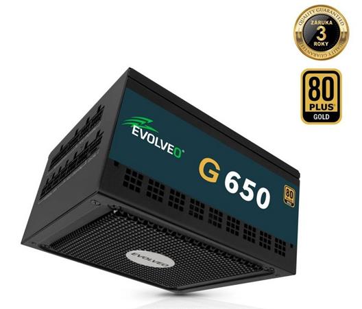 EVOLVEO G650 zdroj 650W, 80+ GOLD, ATX 3.1, PCIe 5.1, aPFC, 140mm ventilátor, modulární, záruka 3 roky, černý