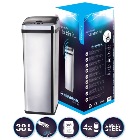 Bezdotykový senzorový odpadkový koš HiMAXX řady Trendy s infračerveným senzorem pro jednodušší a hygienické používání. Stačí pouze přiblížít ruku nebo předmět k oblasti horní části koše a víko HiMAXX TouchLess se plynule otevře. Po vhození odpadků do koše se víko opět samo do pár sekund i zavře. Odpadkové koše HiMAXX Bin tak dokáží velice efektivně snížit výskyt bakterií v domácnostech, kancelářích, zdravotnických či jiných provozech. Senzorové koše HiMAXX Bin Vám nabídnou optimální hygienické řešení pro rychlé, čisté a účinné likvidování odpadků.